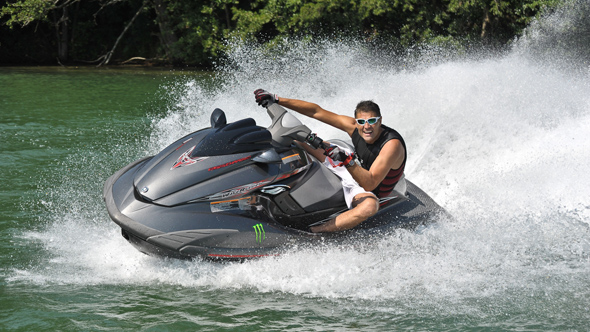 Do ćwiczeń na wodzie wybrał najmocniejszy skuter Yamahy – FZR napędzany doładowanym silnikiem o pojemności 1812 cm3 i mocy 210 KM. Sportowy kadłub wykonany w zaawansowanej technologii NanoXcel z dwuosobową kanapą sprawdza się zarówno podczas ścigania na bojach, jak i zabaw w kilwaterze łodzi motorowej. Hołek spędza na nim każde wolne popołudnie, trenując na torze ustawionym na olsztyńskim jeziorze Ukiel. „Yamaha FZR to najlepszy skuter do wyścigów na bojach – mówi Krzysztof. – Dzięki kompresorowi w silniku, jest bardzo mocny, szybki i zrywny. Długi kadłub na redanach świetnie się prowadzi, dając ogromną przyjemność z pływania”.